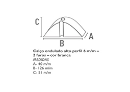 * Calço ondulado alto perfil 6mm - 2 furos - brancoMedidas: Altura: 51mm / Comprimento: 126mm / Profundidade: 40mm
