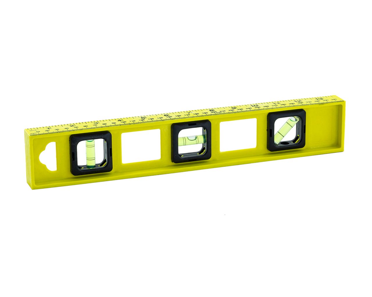 * Os níveis de PVC Thompson, garantem maior leveza, proporcionando mais agilidade na utilização, possui 3 bolhas, para nivelamento horizontal, vertical, e 45°. Possui graduação em milímetros e polegadas em sua parte superior.
