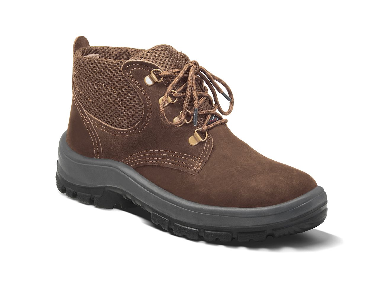 ** Modelo com palmilha removível. Calçado de segurança tipo botina confeccionado em couro curtido ao cromo.