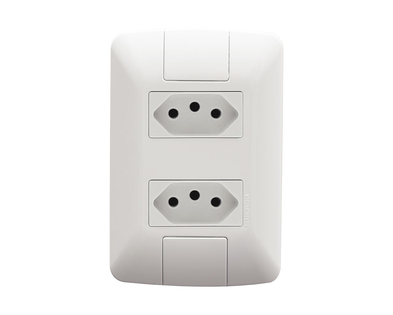 * Ref.: 57241066* Conjunto 4x2 com 2 Tomadas 2P+T Tramontina Aria 20 A 250 V Branco* Dimensões do produto: 120x80x35 mm